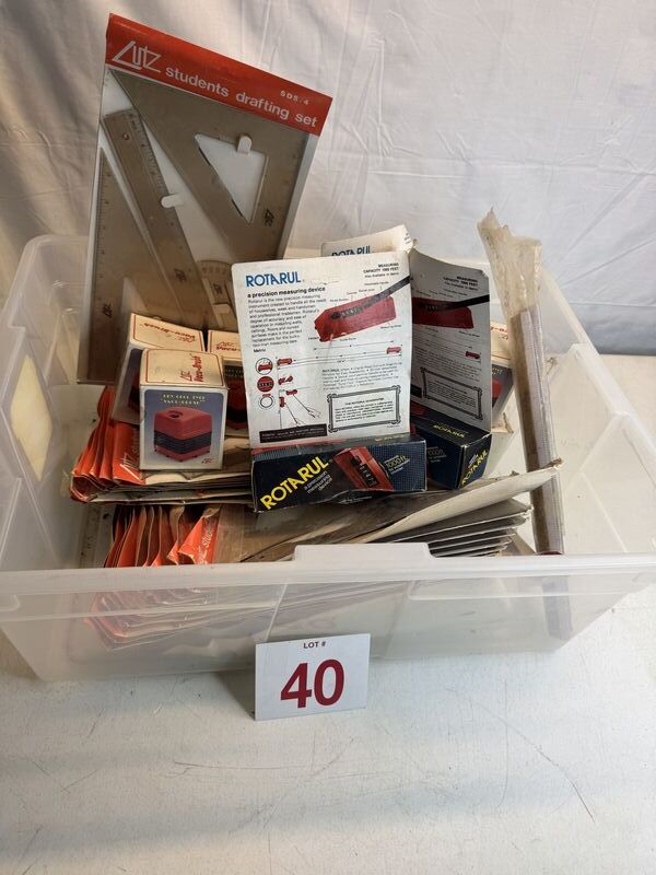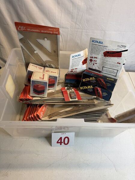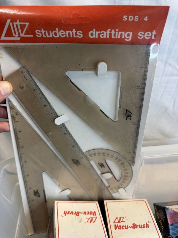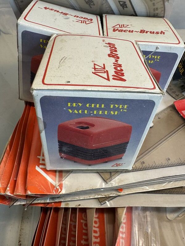 Rulers and a drafting set a precision, measuring tool and a dry cell type vacuum brush, large quantity see photos sold as in