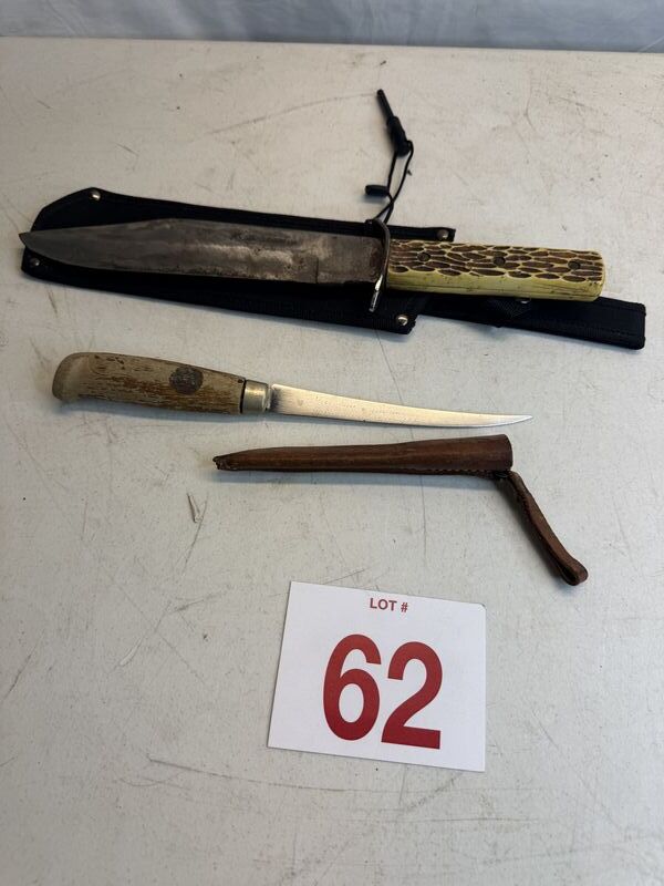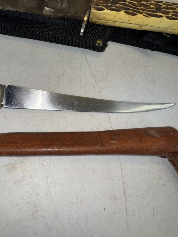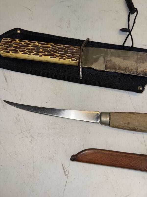 Fillet knife and bowie knife. Cobra hunter two, and Finland fillet knife see photos for description sold as is.