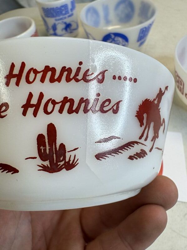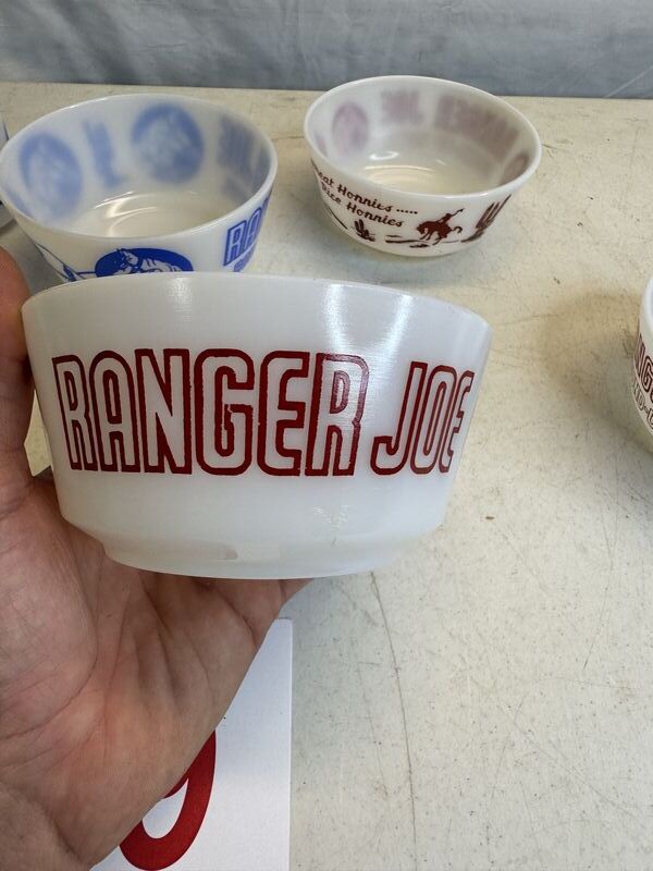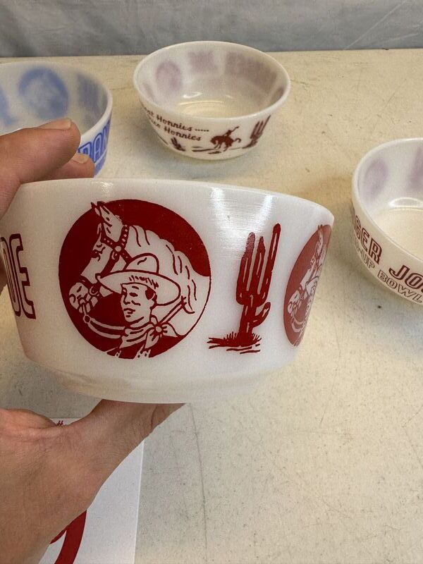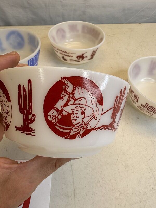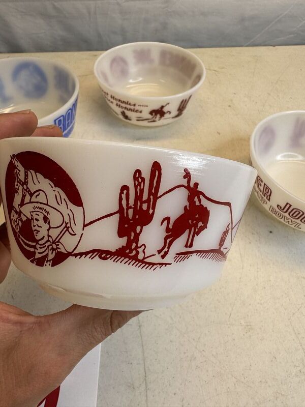 One bowl has a crack, the rest have no chips or cracks. See photos sold as is.
