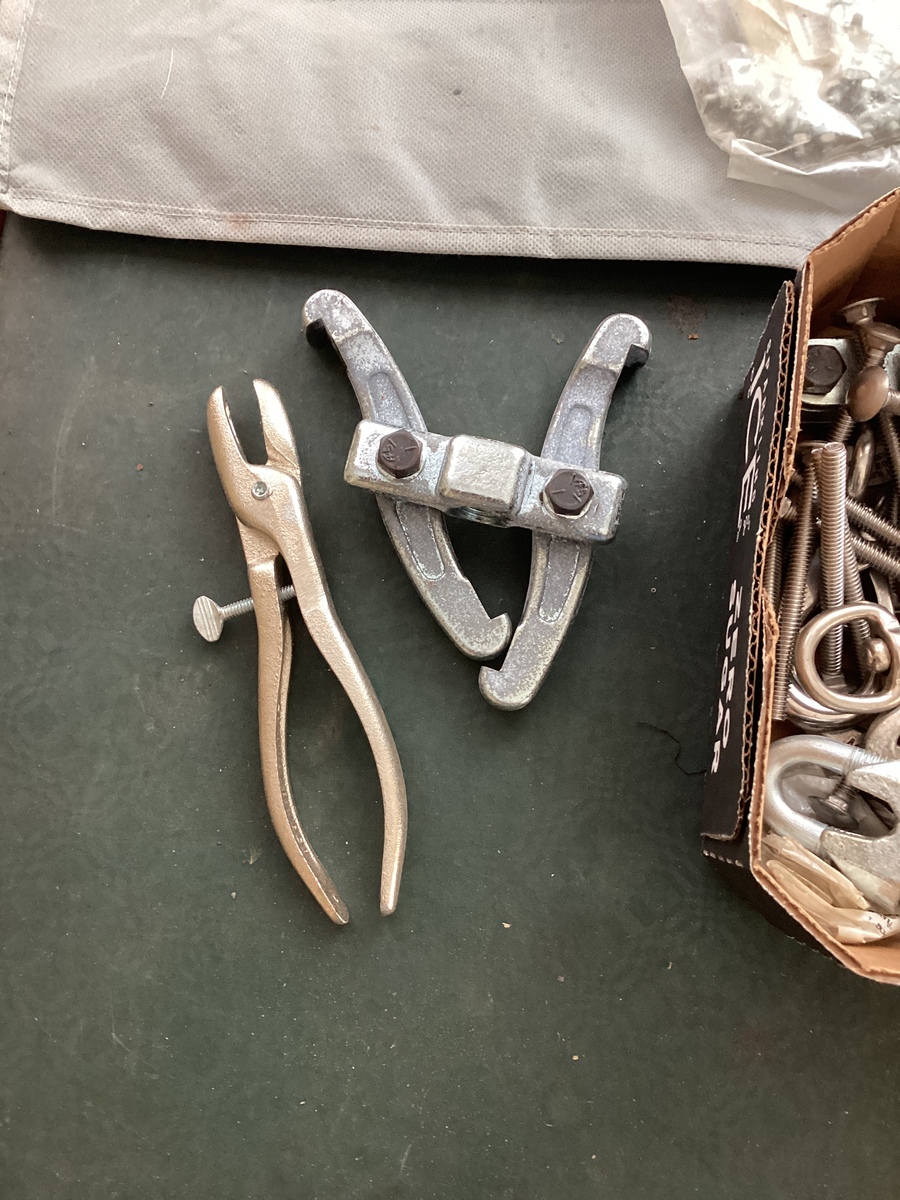 Tools, small engine parts, antiques and collectibles advertisement, a small assortment of items and goods for sale at this auction