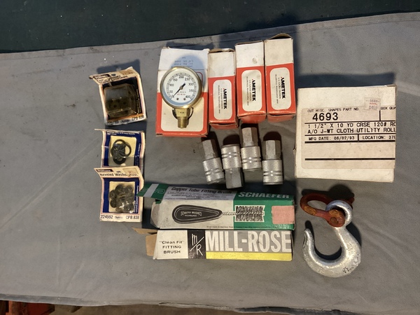 Tools, small engine parts, antiques and collectibles advertisement, a small assortment of items and goods for sale at this auction
