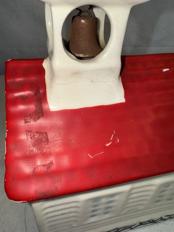 No chips or one crack near school bell. some of the paint is fading. See photos sold as is.