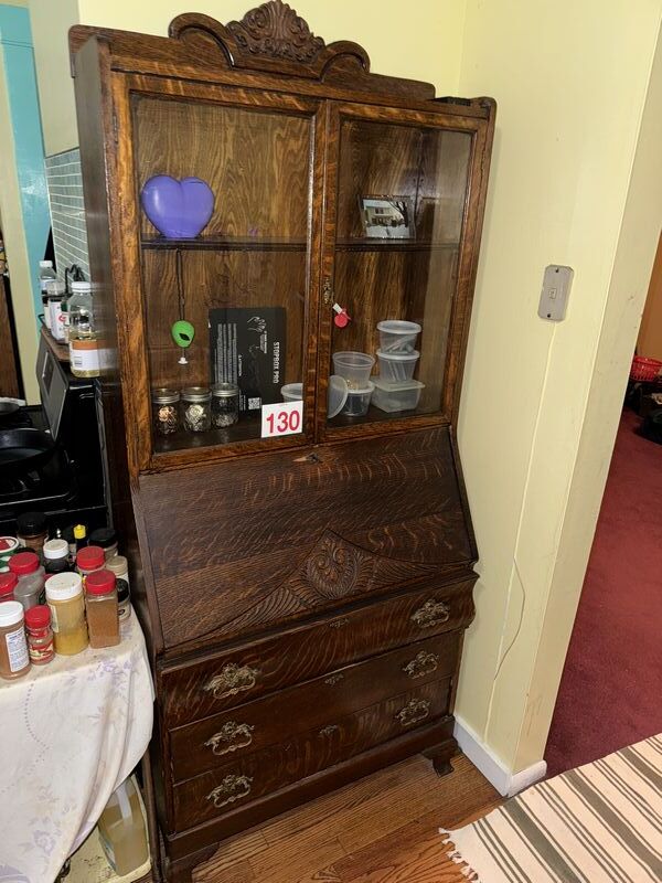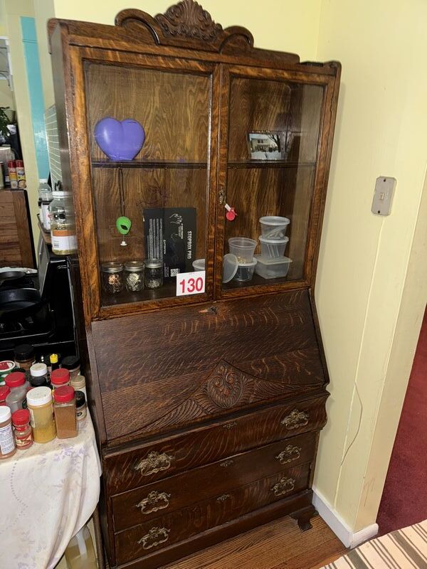 34”x18”x78” tall needs some restoration see photos sold as is contents not included