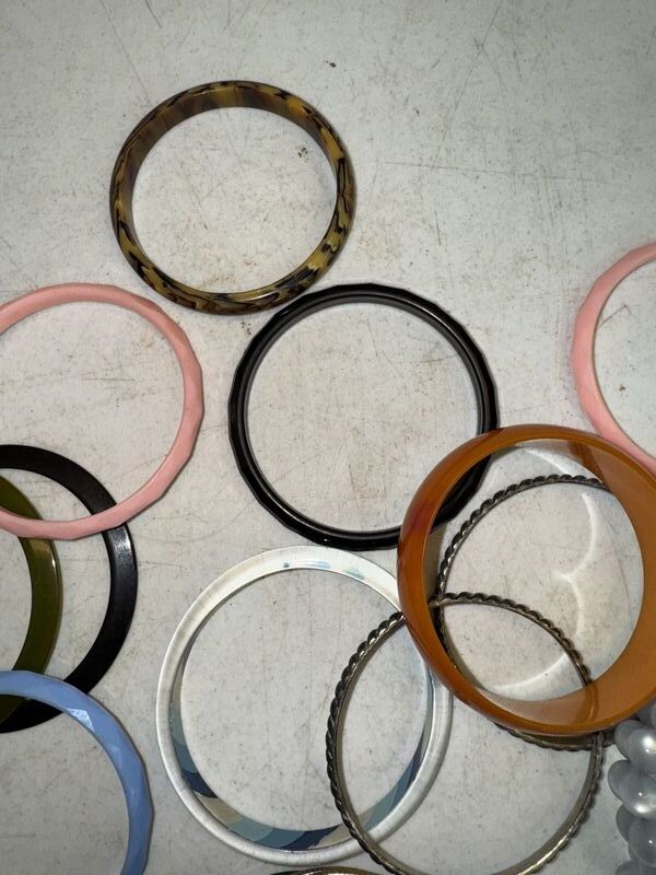 Some are bakelight some are celluloid some are plated gold see photos sold as is