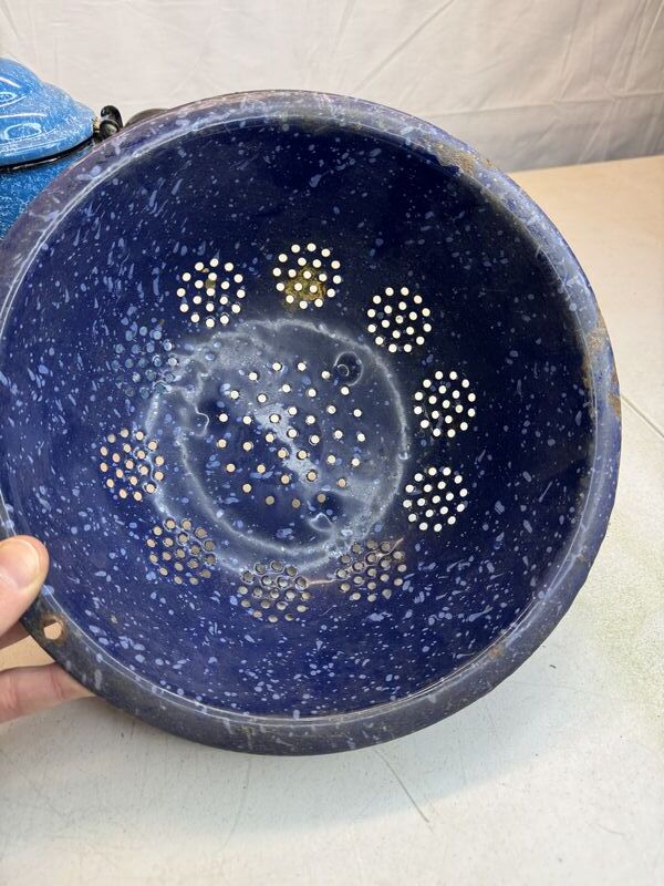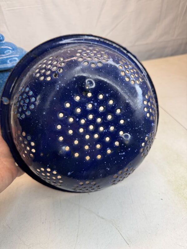 Porcelain strainer and porcelain teapot see photos for condition sold as is