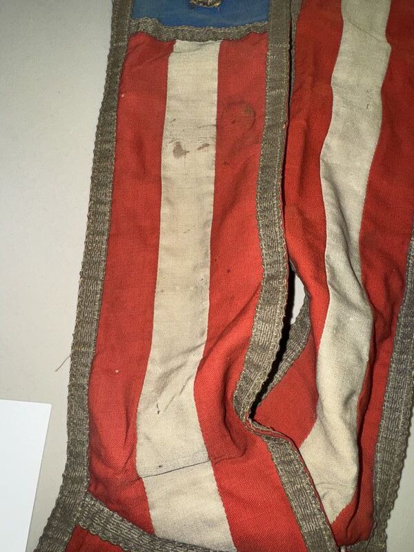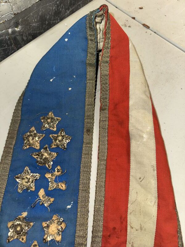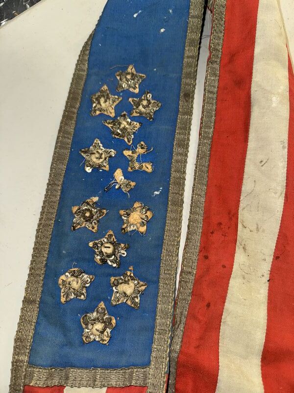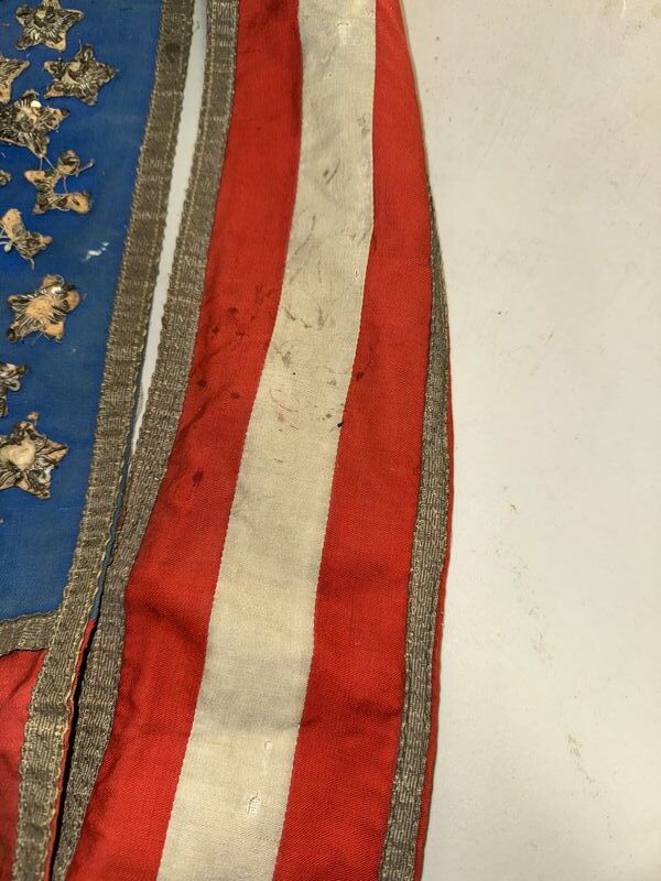 Some staining and moth holes. Some of the stars is damaged. See photos sold as is.