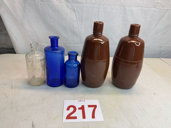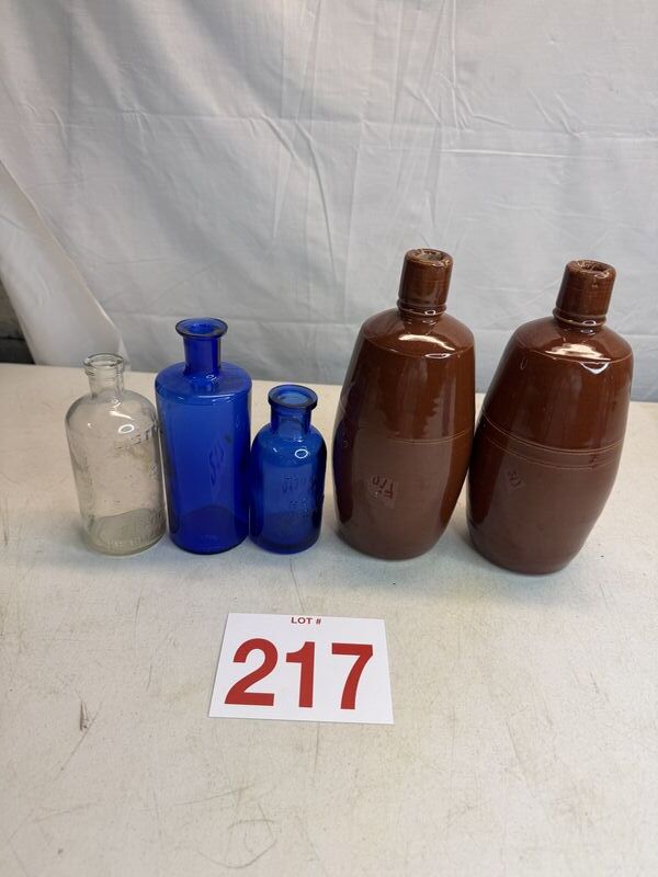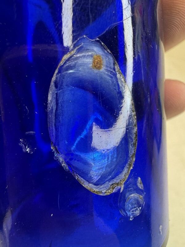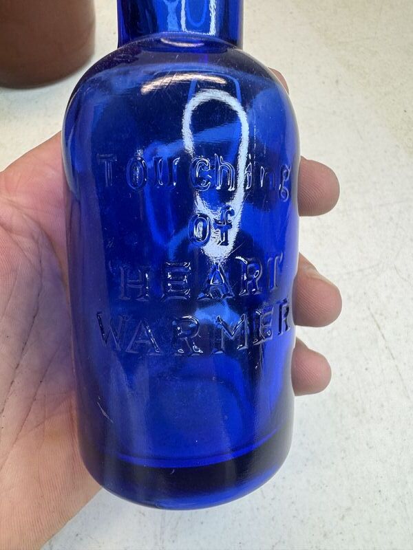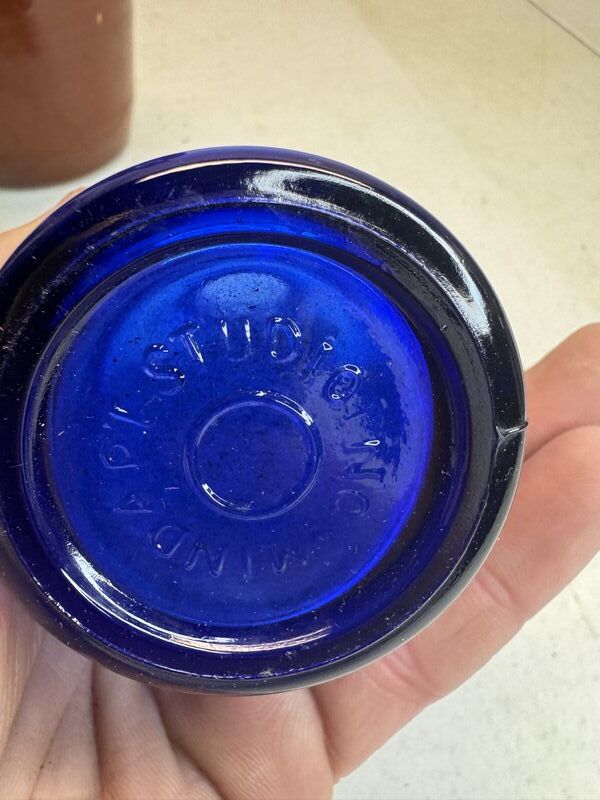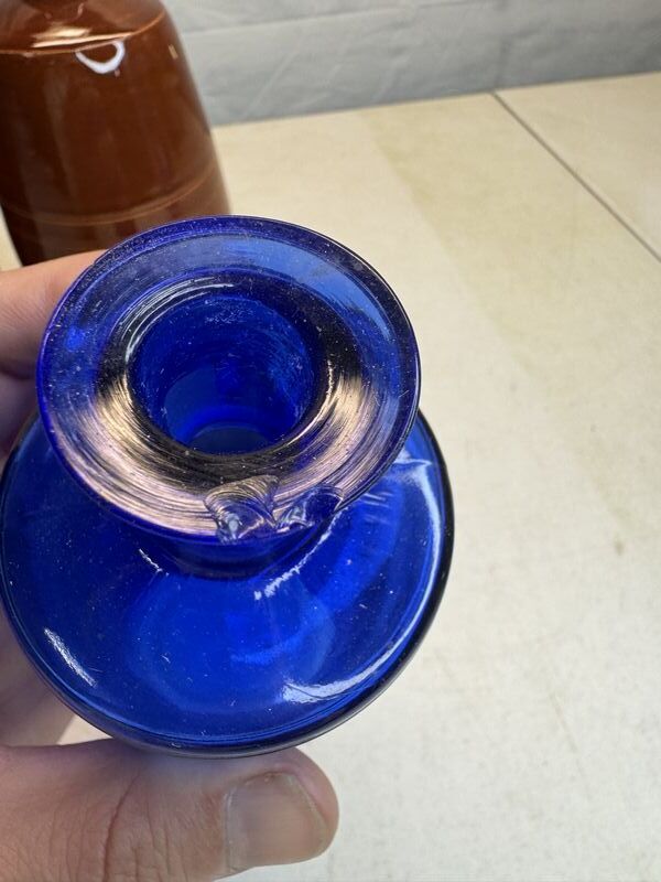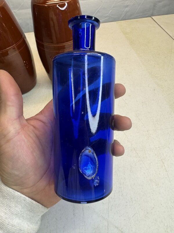 One cobalt blue bottle has a chip on the rim all others no chips or cracks. See photos sold as is.