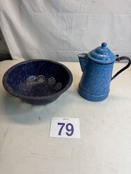 Porcelain strainer and porcelain teapot see photos for condition sold as is