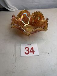 #34 - Imperial Marigold Carnival Glass Ruffled Bowl
