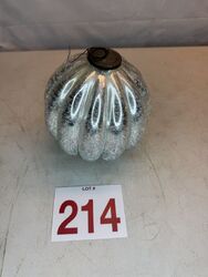#214 - Vintage Oversized White Crackle Pearlized Kugel Melon Ornament 7”