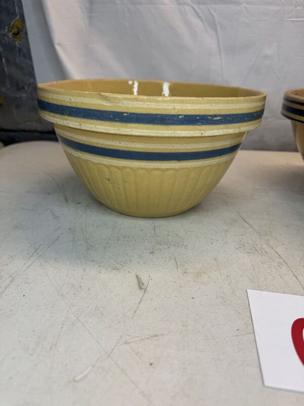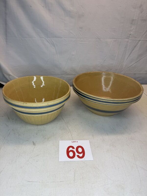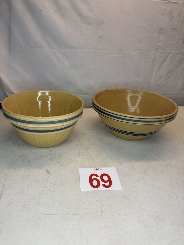12 inch bowl, and 10 inch bowl. No chips some cracks see photos sold as is