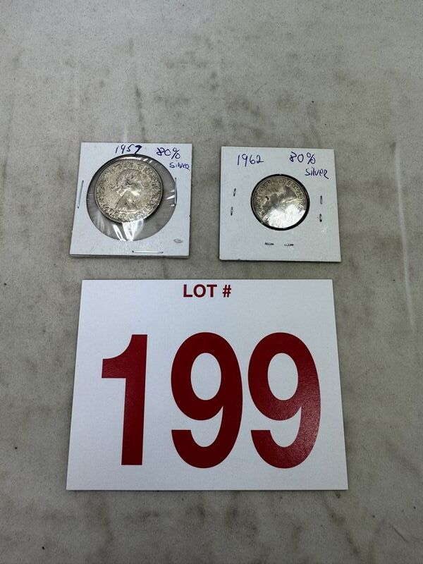 1957 1/2 dollar, 1962 quarter Canada coins 80% silver see photos sold as is