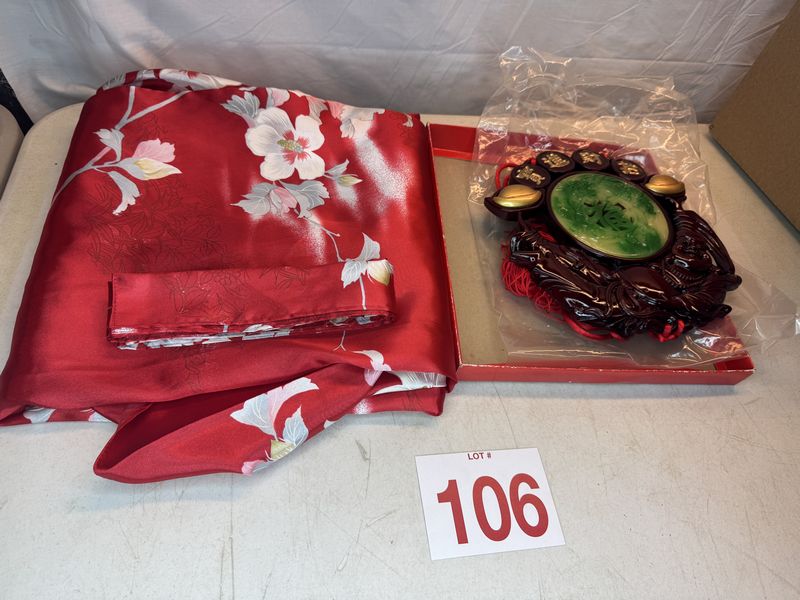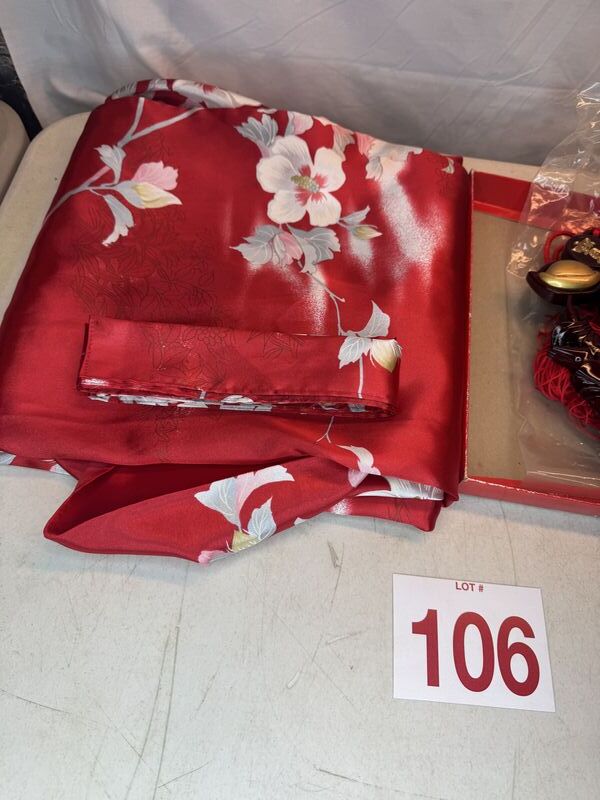 No rips or tears or stains in the kimono and wall hang art is new unused see photo sold as is