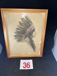 17” x 22” Indian chief Victorian frame see photos sold as is