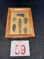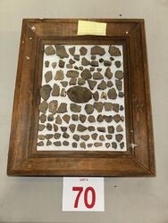 Various types of tools, arrowheads, artifacts glued to board, see photos sold as is