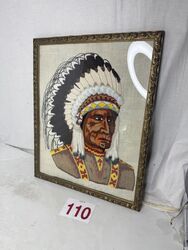 18” x 24” embroidered vintage chief on fabric. See photos sold as is.