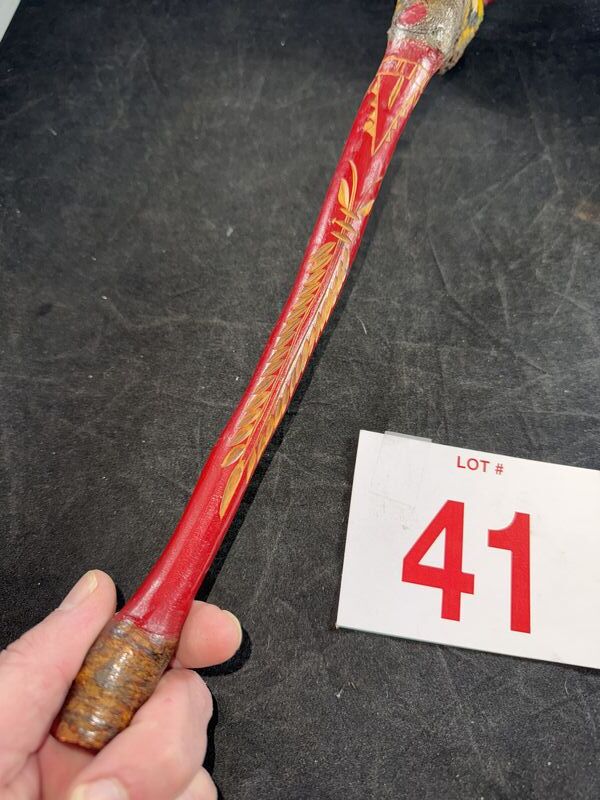 Hand painted, handmade shows signs carved 17” club see photos sold as is