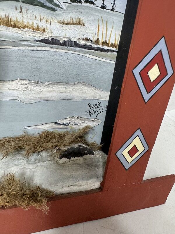 18” x 21” real leather clothing hand carved hand painted signed sea photos sold as a