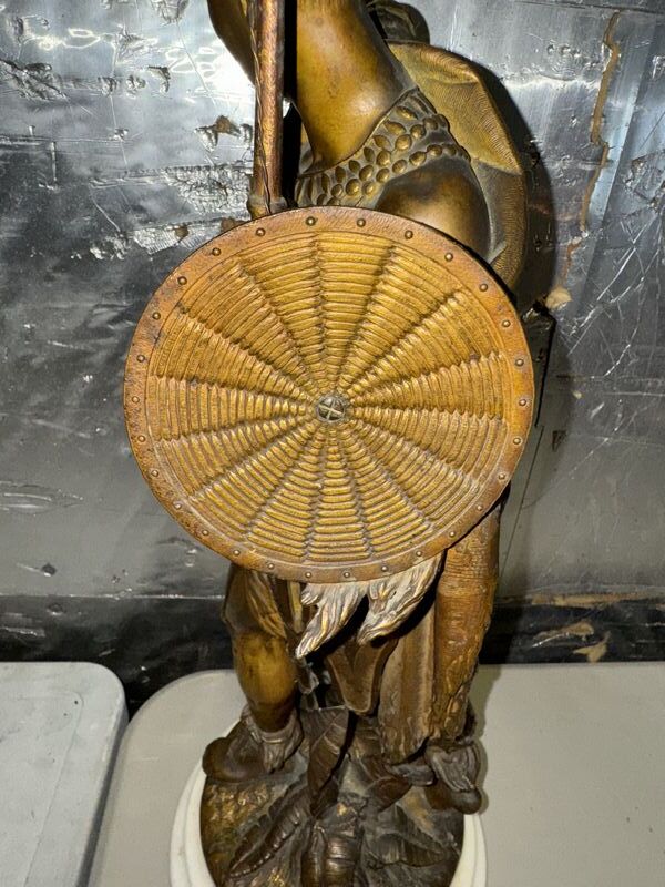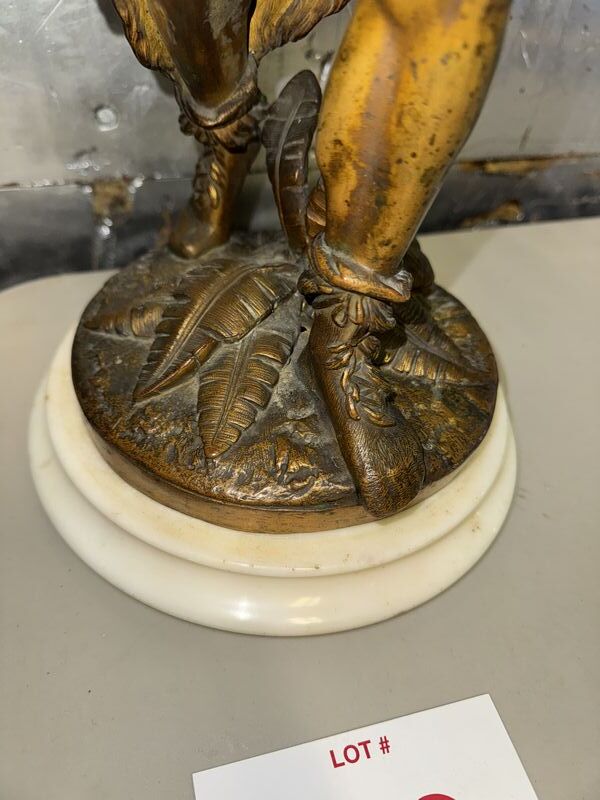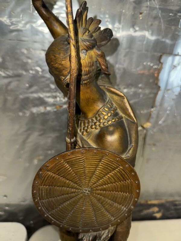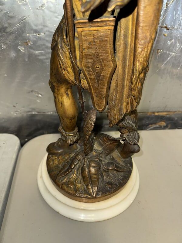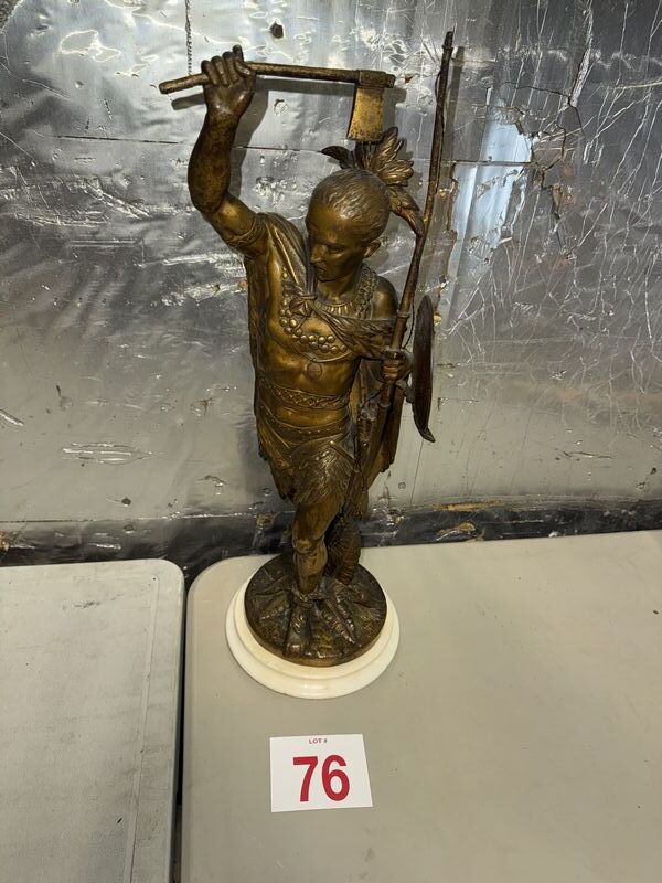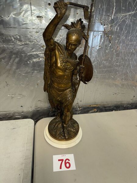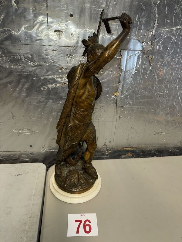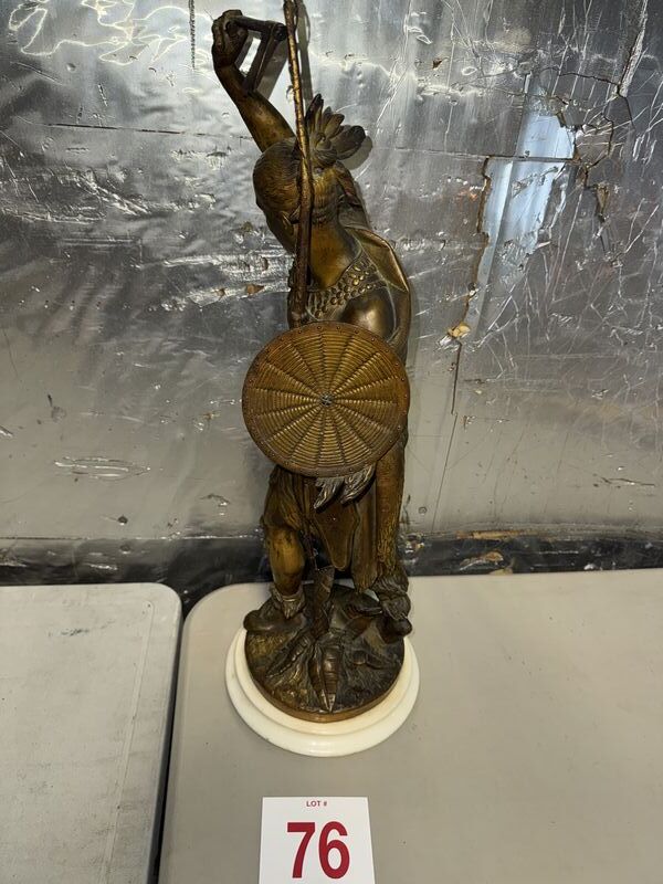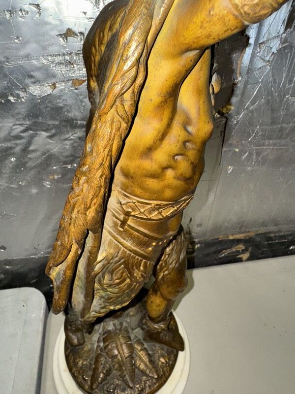 Native American Warrior bronze and zinc statue 20” tall on marble base extremely detailed see photos sold as is