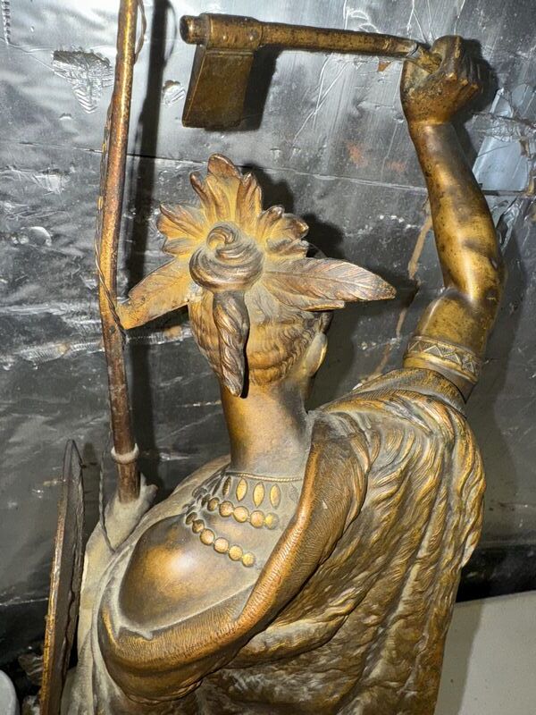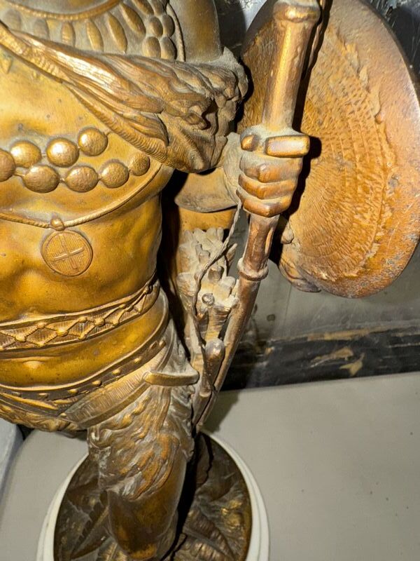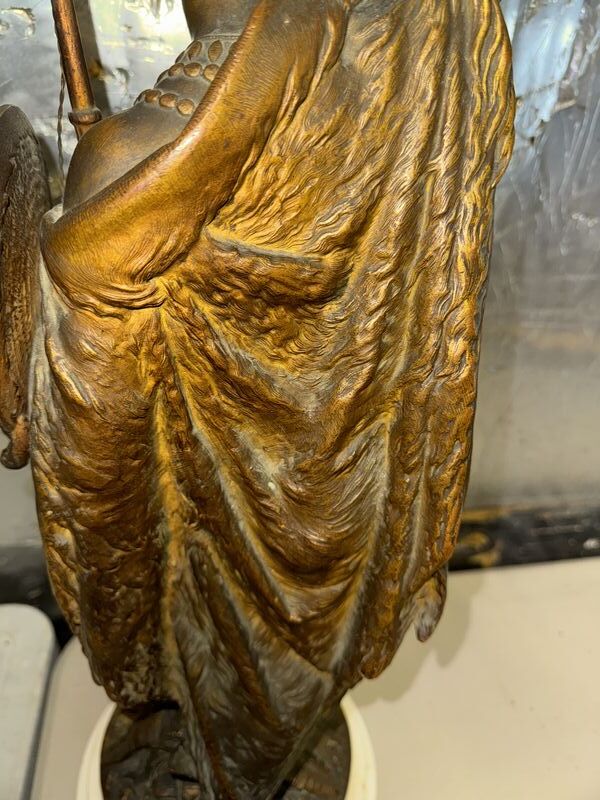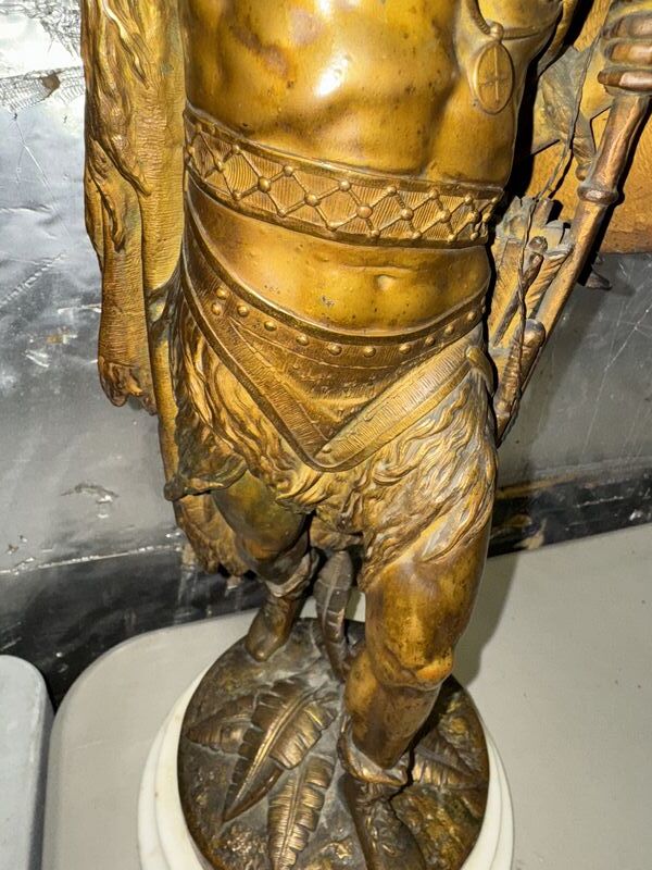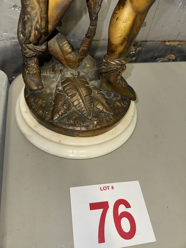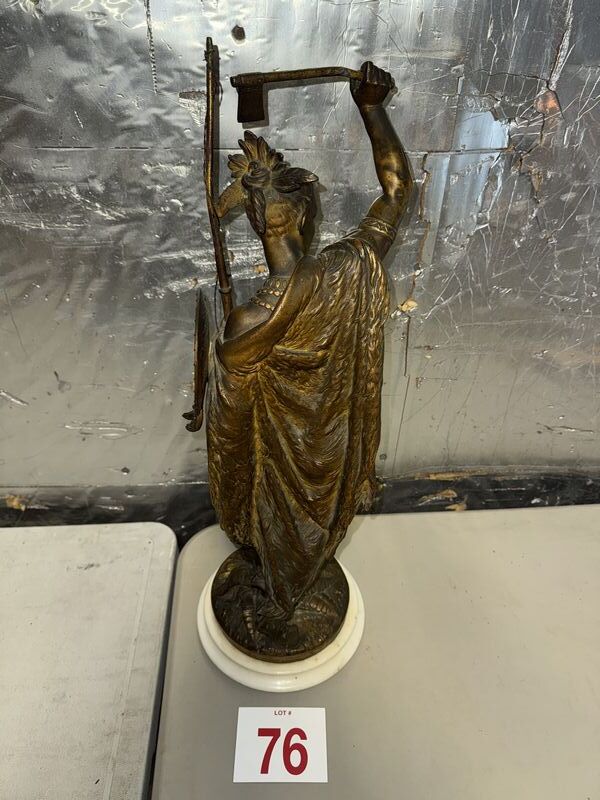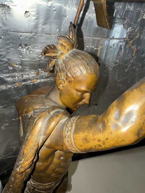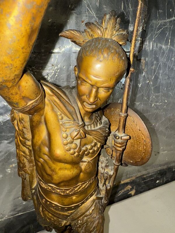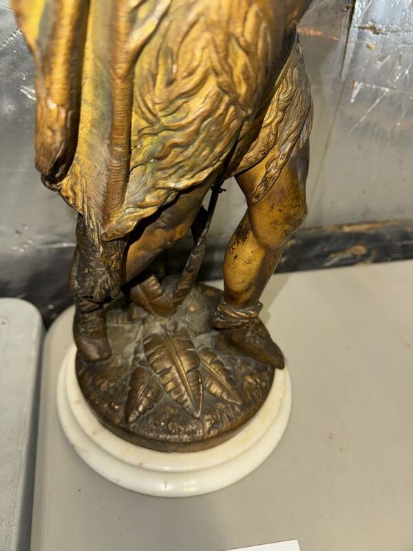 Native American Warrior bronze and zinc statue 20” tall on marble base extremely detailed see photos sold as is