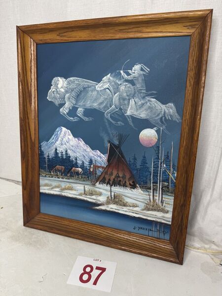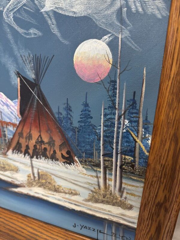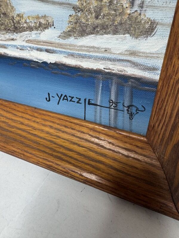 Johnny Yazzie, Native American painting 1995 signed original oil on canvas 18” x 21” see photos sold as is