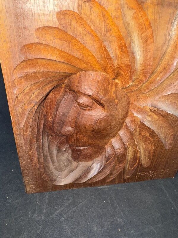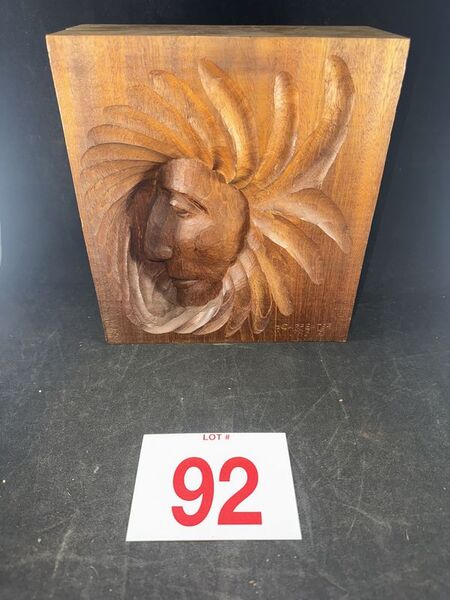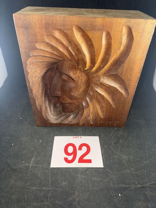 10” x 10” block of wood hand carved Indian chief see photos sold as is