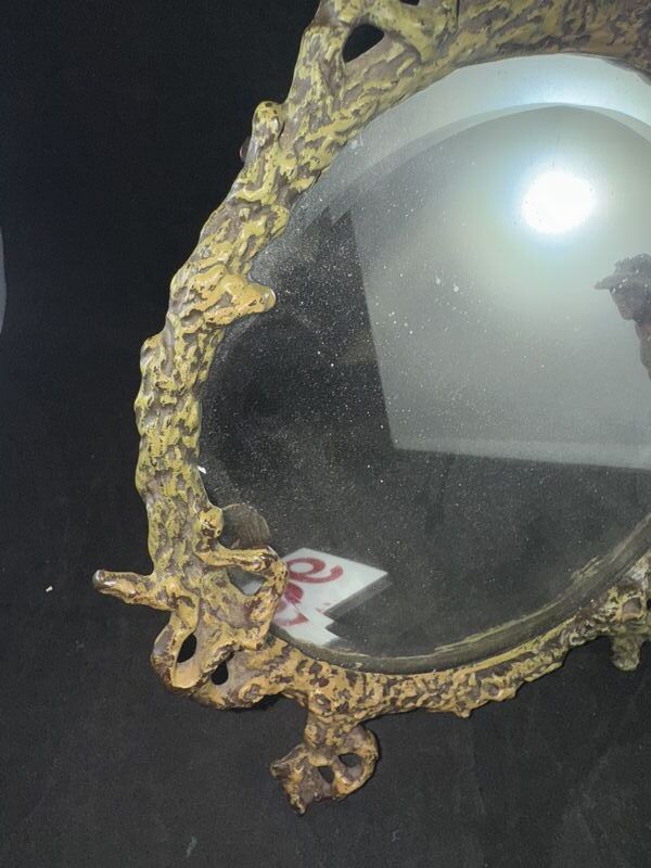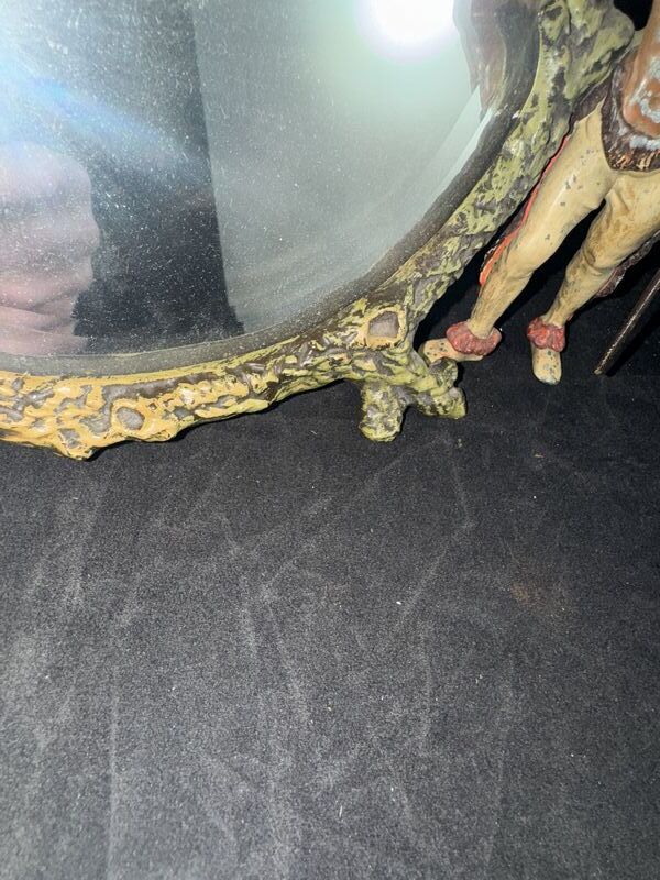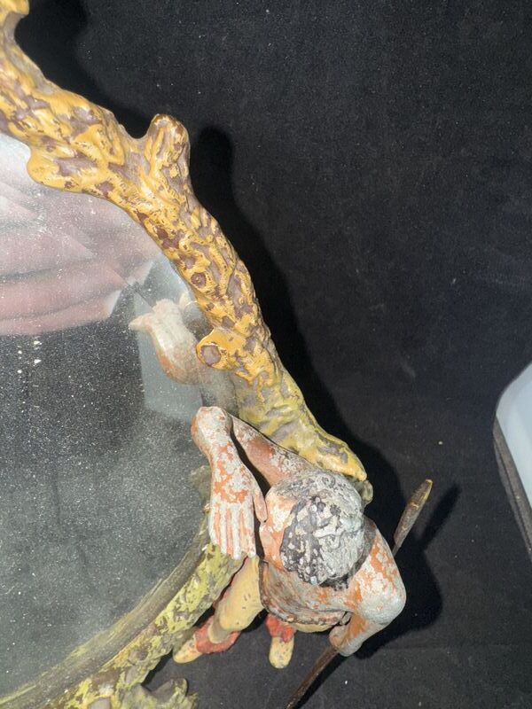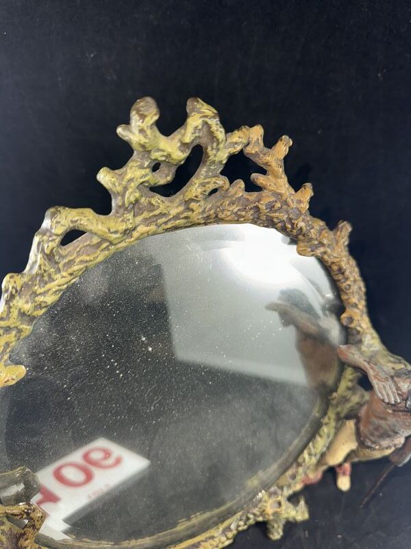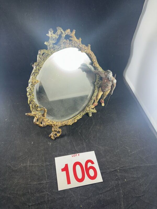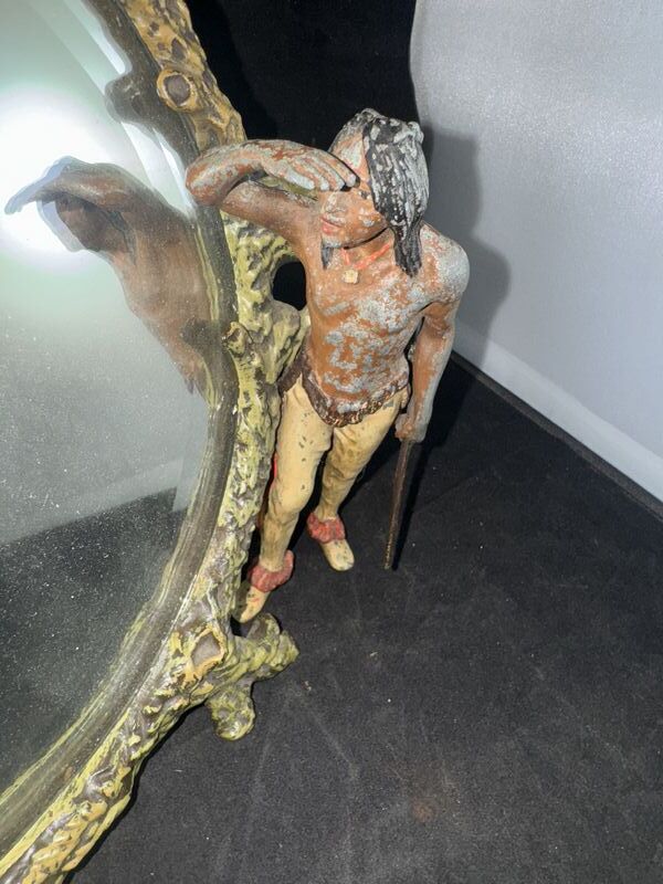 This is a rare Franz Bergman antique round cast-iron tabletop mirror with Native American looking in. 10” x 11” see photos sold as is.
