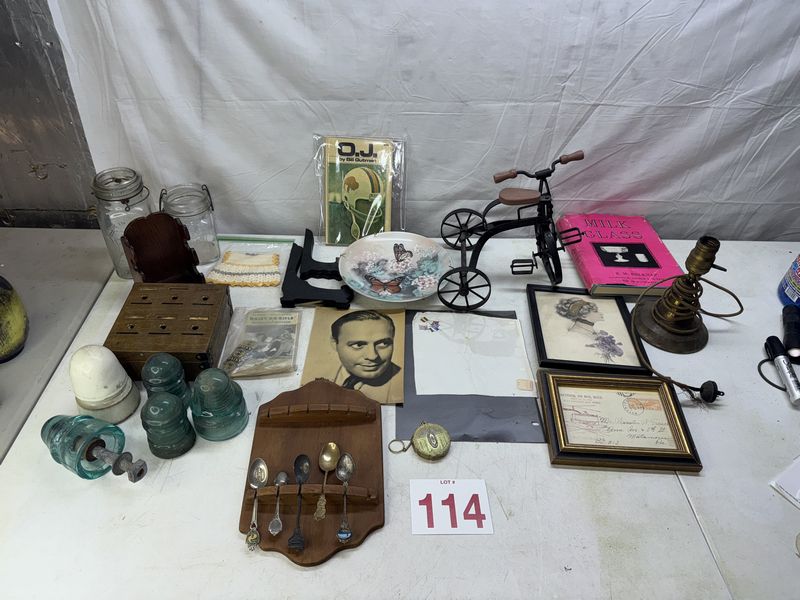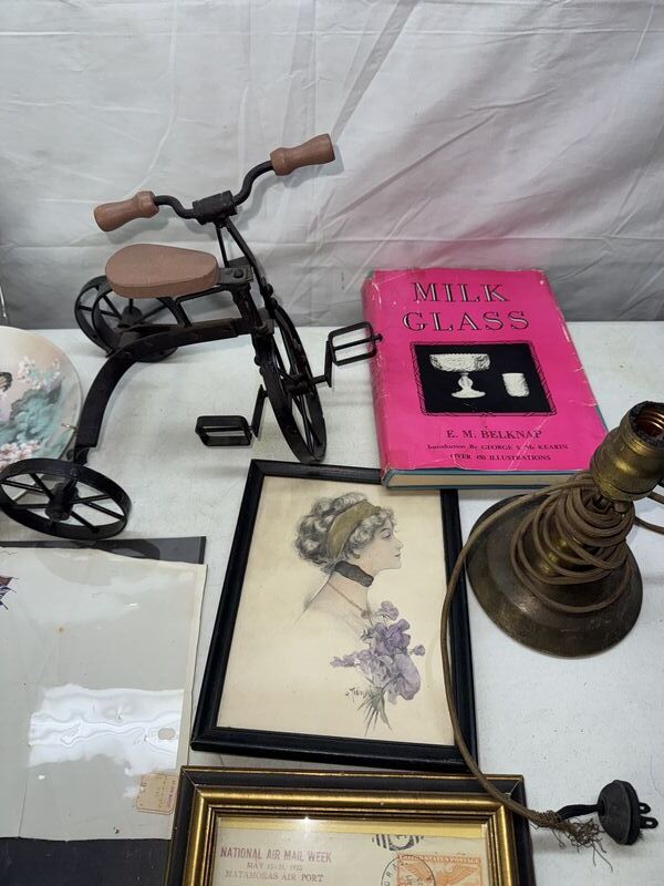 Various types of collectibles, antiques, and ephemera see photos sold as is