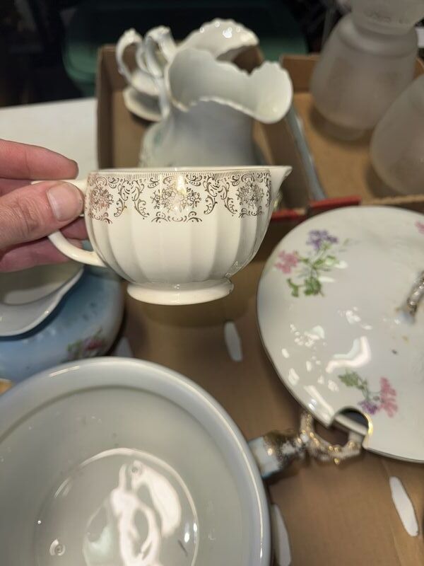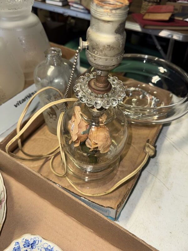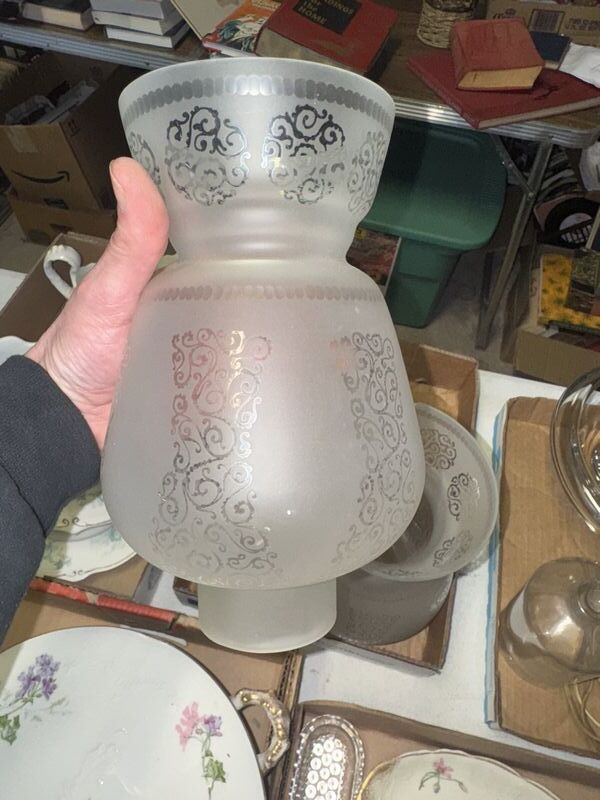 No chips or cracks on any pieces except for the one clear lampshade there’s a crack see photos sold as is