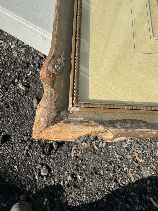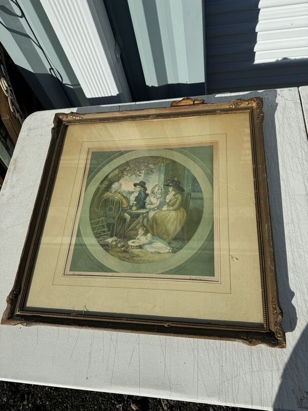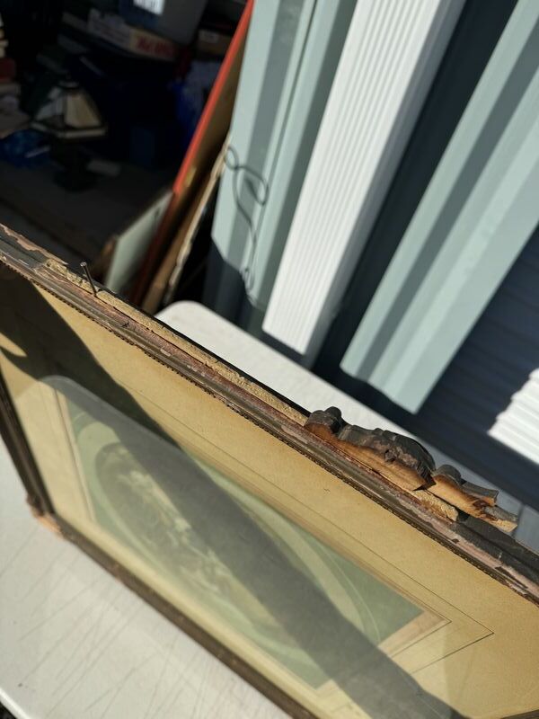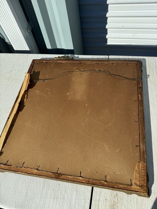 21”x21” There’s some damage to frame artwork seems to be in good condition sold as is