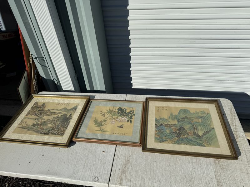 2 paintings 20”x18” the other 17”x15” some frame damage to small painting the other 2 in good condition signed sold as is