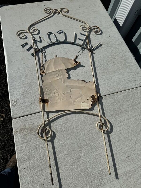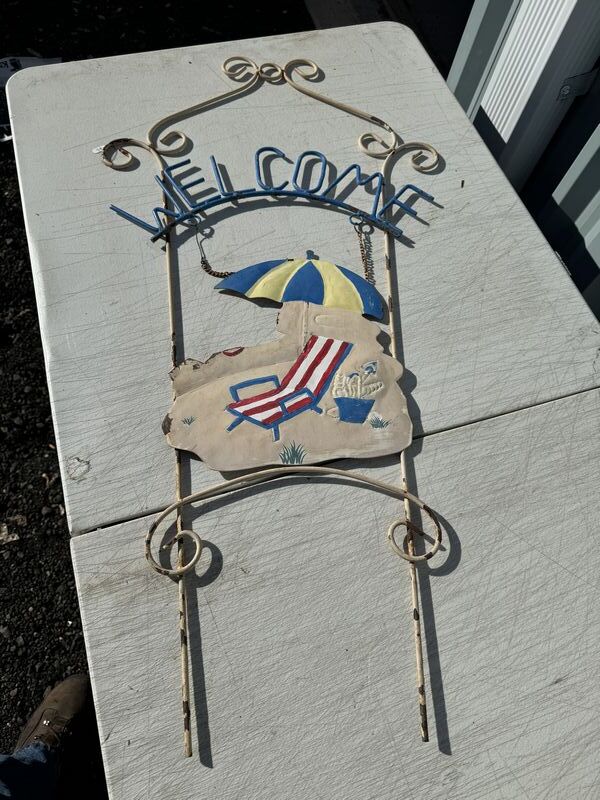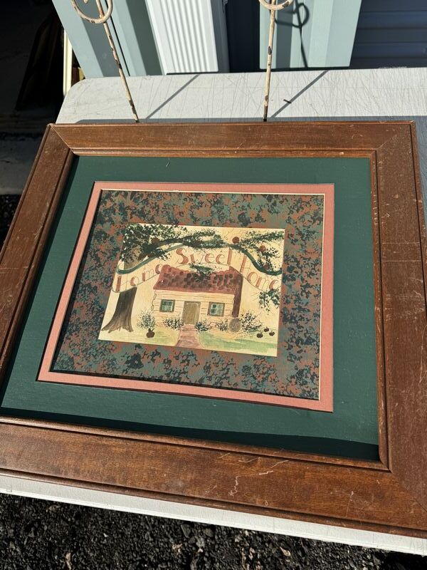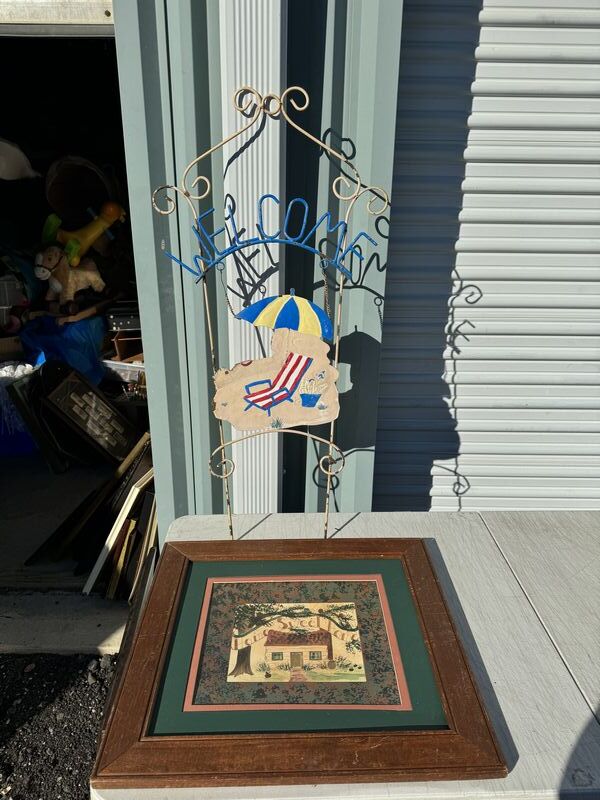 Metal yard welcome sign 39” in height and framed home sweet home picture