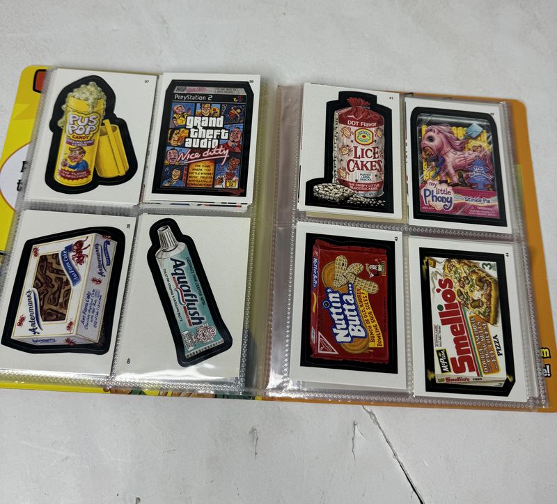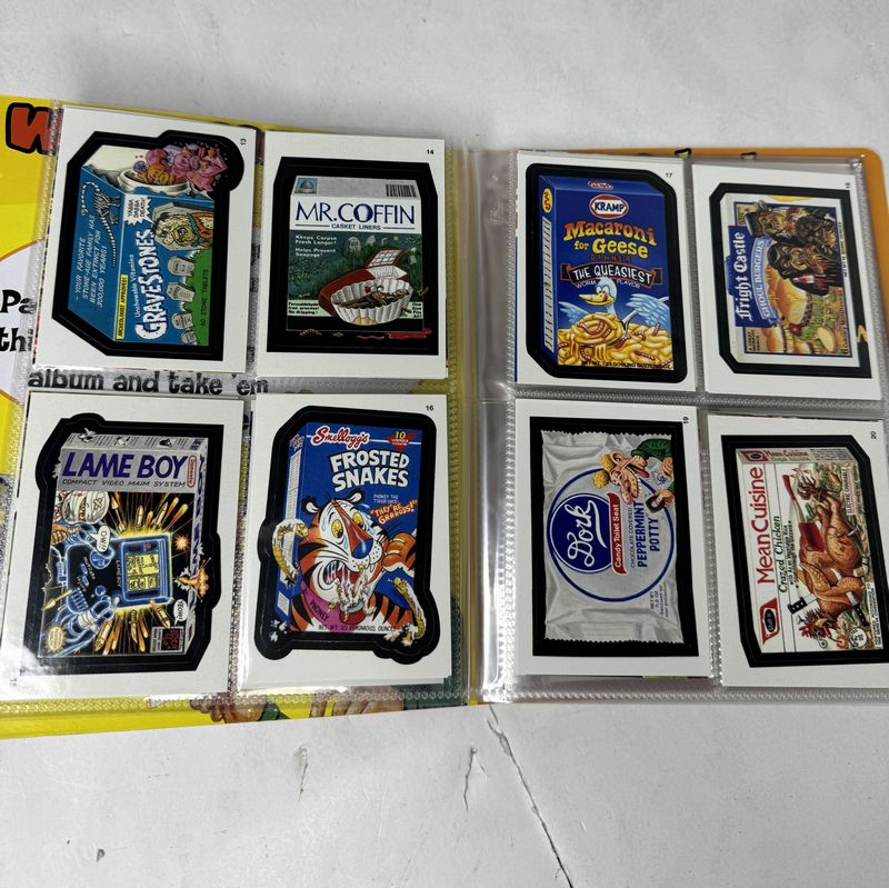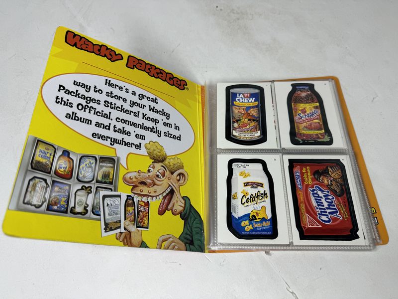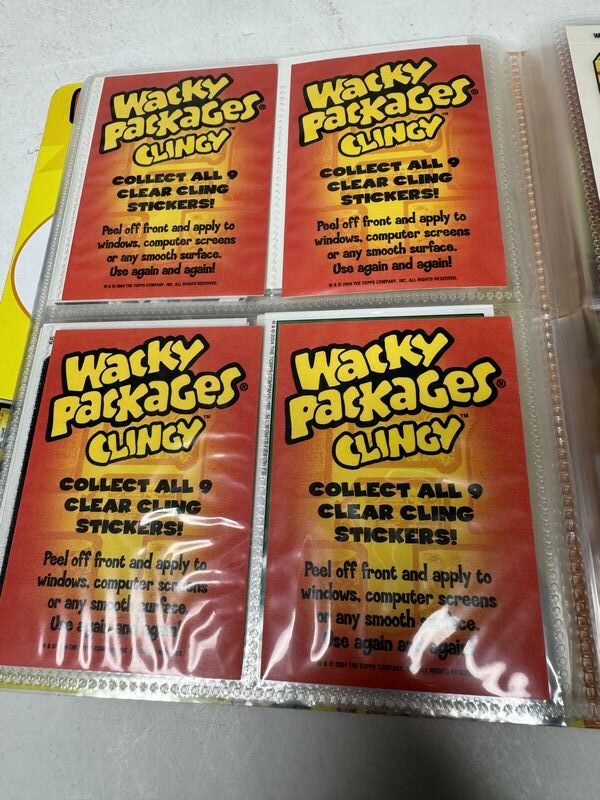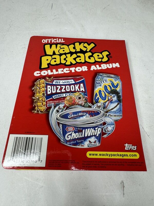 Wacky packages collector album from 2004-2005. Album is almost full. One page empty 14 pages total. All cards seem to be in good condition. Sold as is.