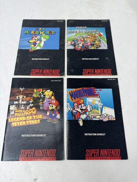 All super Nintendo booklets, super Mario world, super Mario kart, super Mario RPG legend of seven stars, mario paint sold as is