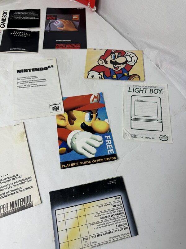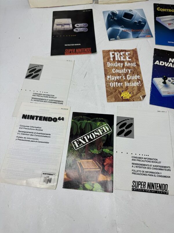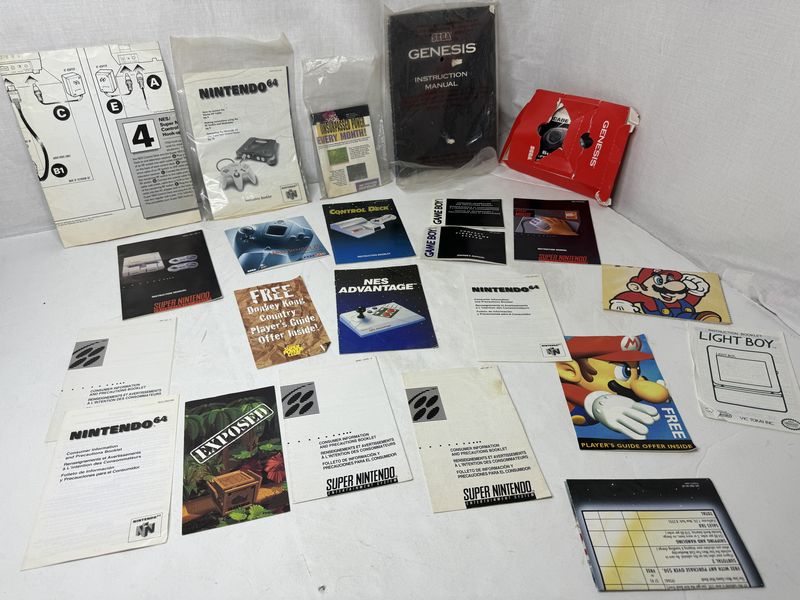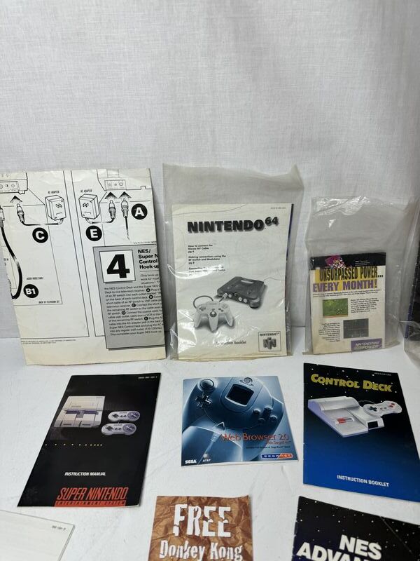 Nintendo, 64 super Nintendo, NES Nintendo, NES advantage, Nintendo, 64 Nintendo game boy, light boy, and other random Nintendo. Structural manuals sold as is.