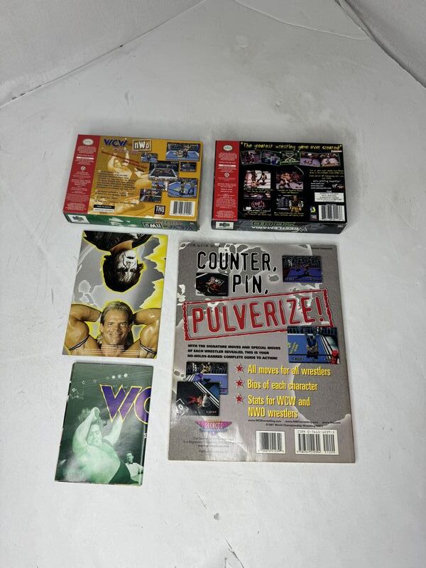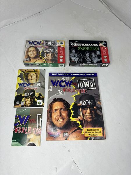 No games WCW versus NWA world tour box, booklet poster, and strategy guide and wrestlemania 2000 no booklet sold as is