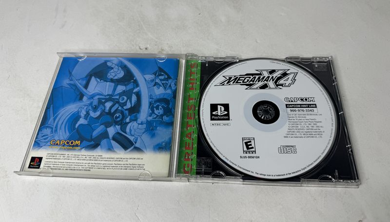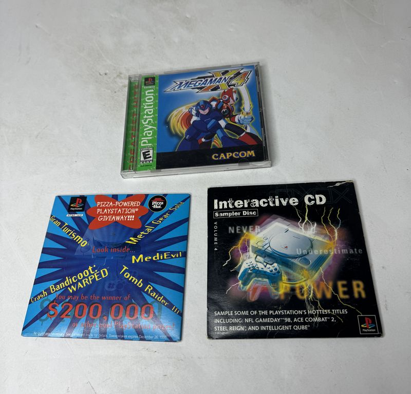 PlayStation greatest hits MegaMan X4 complete with booklet Pizza Hut, demo desk and interactive sampler disk sold, as is