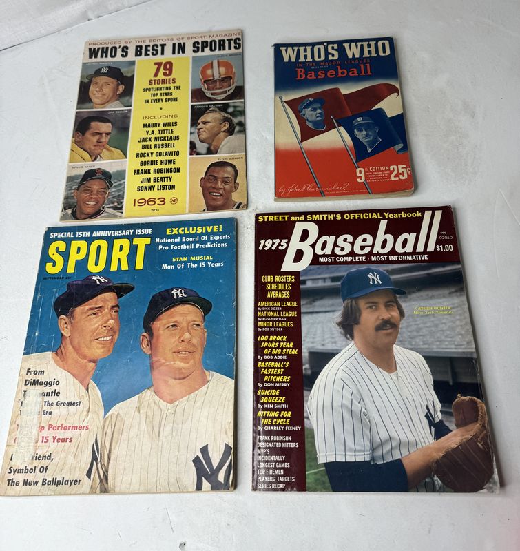 Who’s best in sports magazine, 1963 who’s who in Major League Baseball 1941 ninth edition sport magazine, September 1961 and baseball most complete most informative magazine, 1975 some creases, no rips or tears sold as is