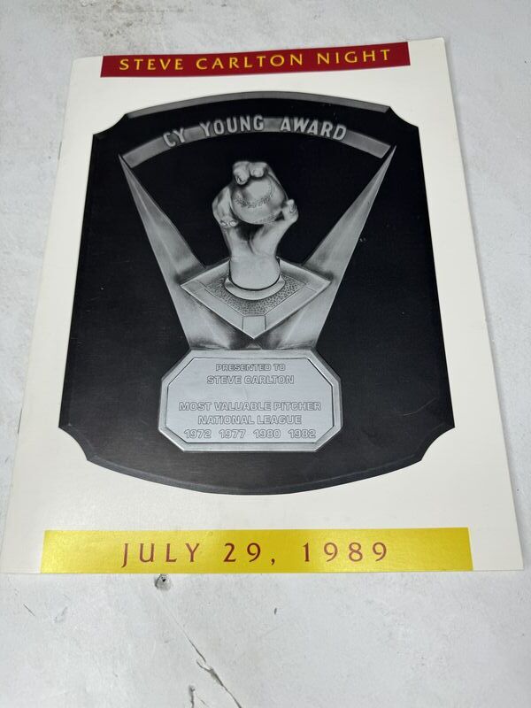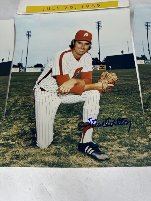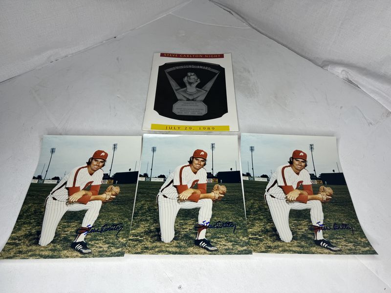 3-8 x 10 photos, Steve Carlton autograph and Steve Carlton Knight program no rips or tears complete sold as is
