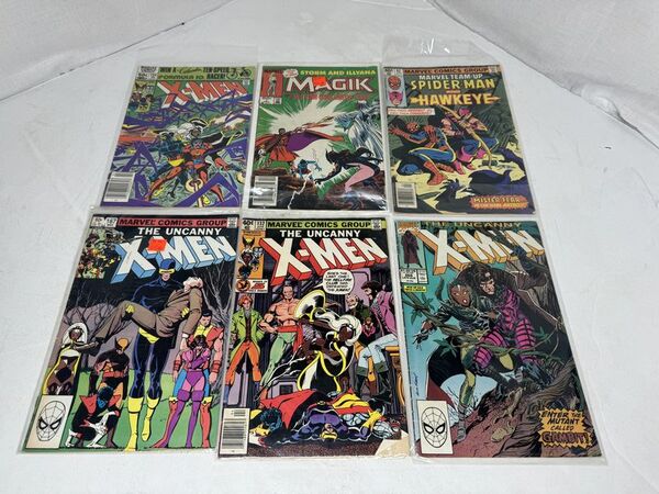Marvel comic group, the uncanny X-Men four issues, limited series and marvel team up Spider-Man and Hawkeye in plastic wrap, no rips or tears some creases sold as