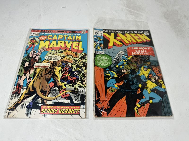 Marvel comics group, Captain Marvel, $.25, number 39 July and Marvel, the strangest teens of all X-Men $.25 issue number 70 June some creases in sleeves sold as