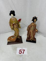 14 inch tall, one is hand carved, other is sewn, see photos, sold as is.