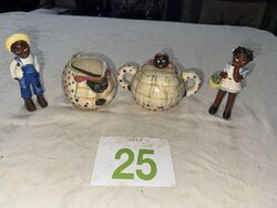 Ceramic banks, Salt pepper shakers, toothpick holder, Made in Japan, No chips or cracks, see photos, sold as is.