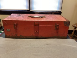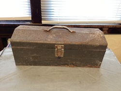 Empty tool box, rust, and tarnish needs to be repainted. 23“ x 11“ x 7“ height.