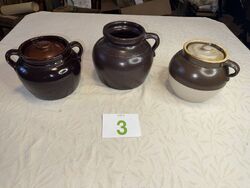 2 half gallons, 1 gallon, No chips or cracks, (one lid has chips) See photos, sold as is