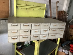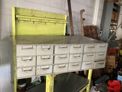 Needs to be wiped down has some grease and oil on it. It’s 36 inches wide by 24“ x 42“ up to the counter height and 64 inches total height.