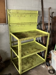 72“ x 30“ x 44“ high it’s attached to a car and is on metal caster wheels