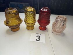 Red lamp has chips on top, no cracks, the others have nor chips or cracks, See photos, sold as is