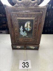 Has one crack on lid and small chips on lid, some craving sea photos sold as is