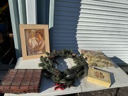 Wreath artwork decorative pillow jewelry box basket case sold as is